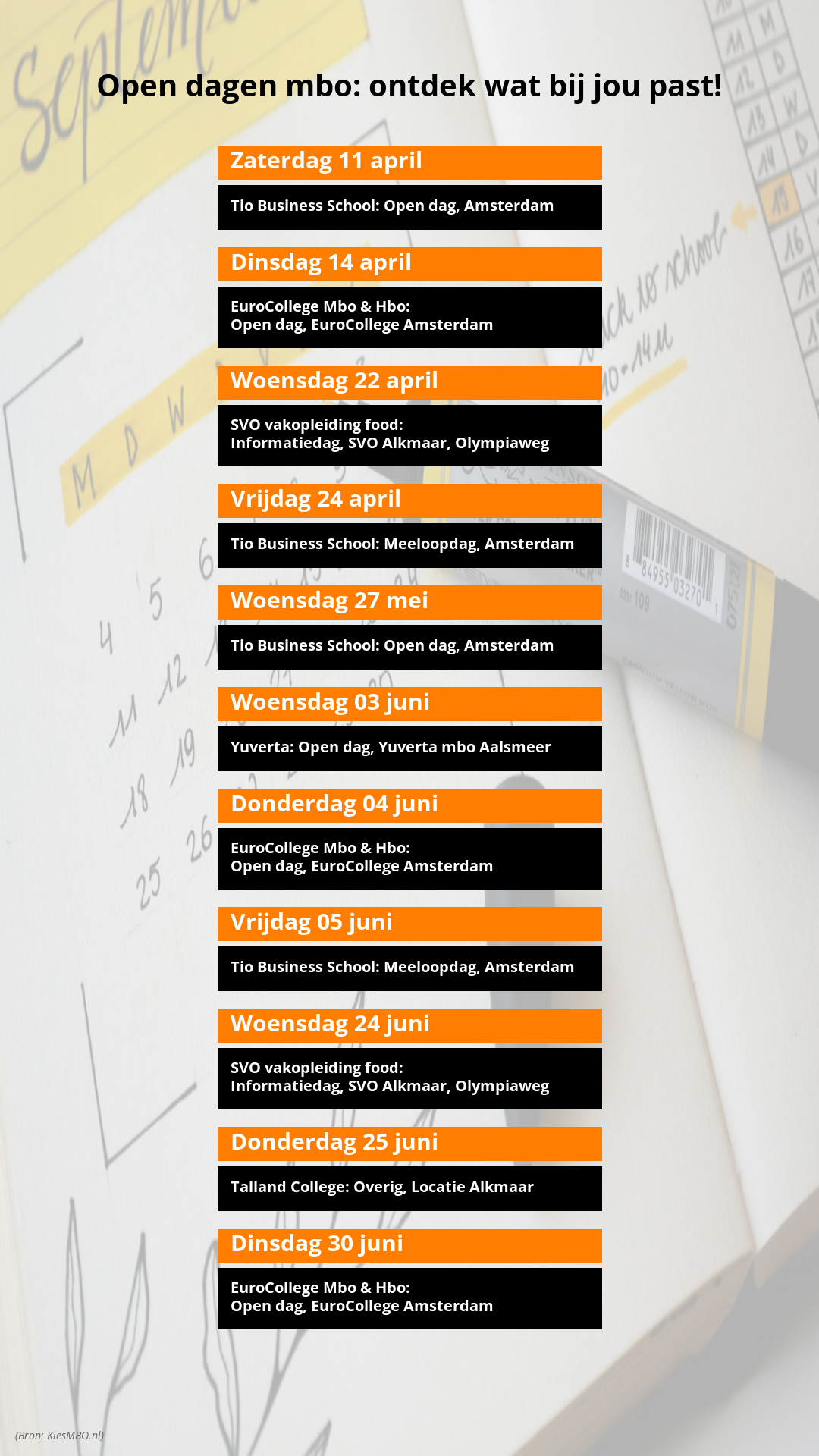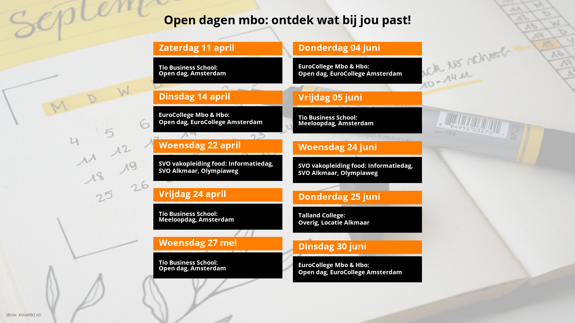 In deze mediakit vindt u aankondigingen van open dagen van mbo’s en evenementen gericht op vo-scholieren.